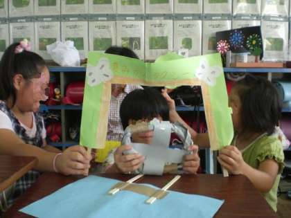 松井さんの帽子やハンドルを作ったり,お母さんのエプロンやたけおくんの白いぼうしを作ったり・・・。いやいや子どもたち,ちょっと懲りすぎですよ・・・。