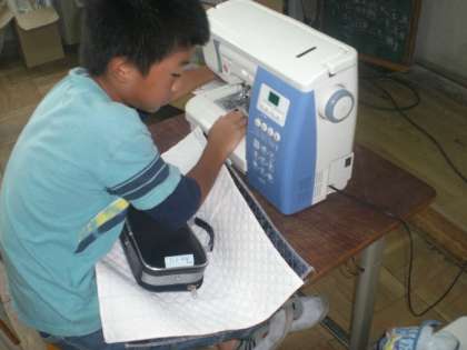いよいよミシンを使ってのナップザック作りがはじまりました!