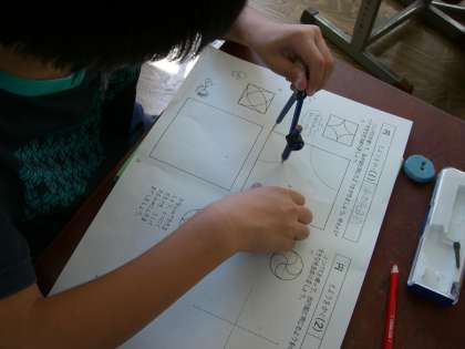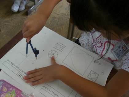 今日は学習したことを使って、コンパスでもようをかくことにちょうせん。