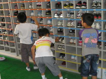 全校のげた箱をチェックしたり,留守の教室の机の整とんをしたりしました。