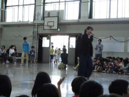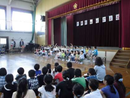 6年生のお兄さん・お姉さんと手をつないで入場です。