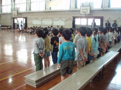 楽しみにしていた1年生の迎える会の当日を迎えました。最初は,6年生に手をつないでもらって入場しました。各学年からは,言葉や歌,ダンスや合奏などのプレゼントをもらいました。一緒に歌ったり,リズムに乗りながら一生懸命に見聞きすることができました。最後は,1年生からのお礼の言葉と校歌の合唱を発表しました。これまで,体育の時間や音楽の時間に練習を積み重ねてきました。言葉も歌もしっかり覚えて発表することができました。納所小学校の仲間になった喜びを味わうことができました。
