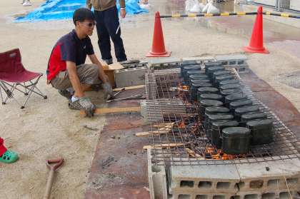 捕まえた魚は「あゆ」です。塩焼きにして自分たちで食べます。ご飯も炊けてきました。