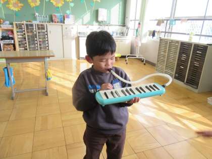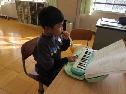 けんばんハーモニカで山のポルカを練習しました。