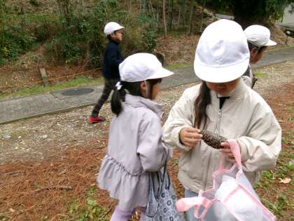 次は、いよいよ松ぼっくりやどんぐり拾いです。