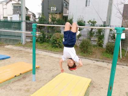 技カードを見ながら、できそうな技に挑戦しています。少しずつ慣れてきて、できる技が増えてくるので、とても嬉しそうです。