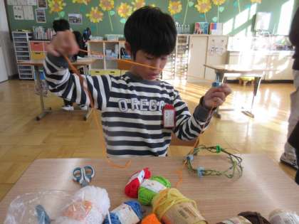 4年生は毛糸をつかって丁寧に巻付け飾っていました。