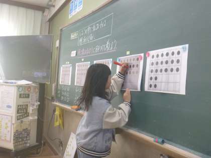 自分の考えを図に表し、式にしながらしっかりとノートに書いていました。発表をするときには、考えが似ているところや違うところを話し合いました。