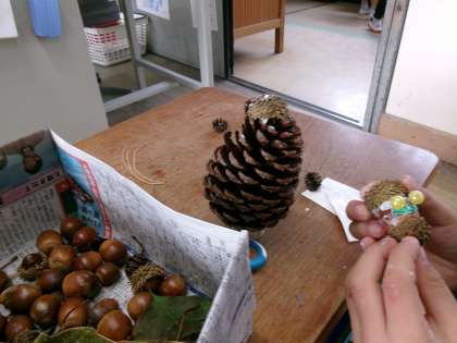 1年生☆生活科『あきとともだち』まつぼっくりツリー2