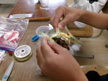 楽しみながら飾りつけをしていました。