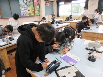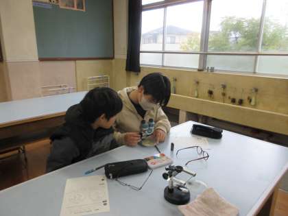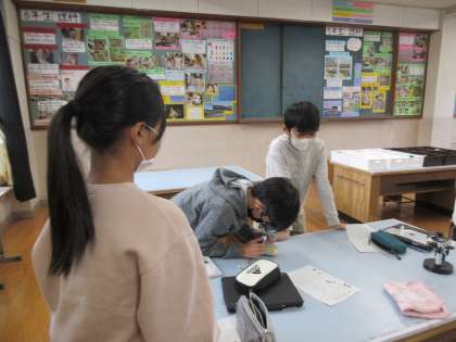 顕微鏡を使って調べました。