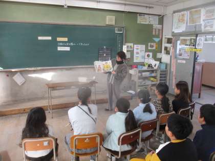 今週水曜日に図書ボランティアさんの読み聞かせがありました。みんな集中してお話を聞いていました。