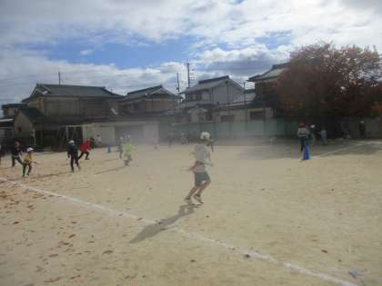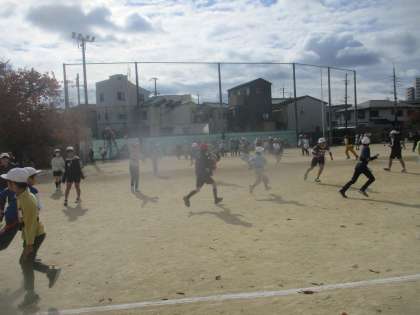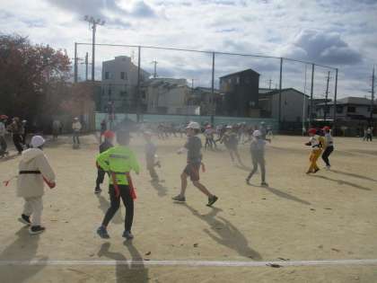 今週水曜日に運動委員会さんが「タグ取りおにごっこ」の企画をしてくれました。4年生のみんなはとても楽しそうに遊んでいました。