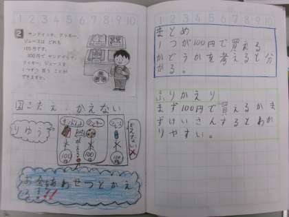 たくさん自分の考えをノートに書いていました。絵や図、式などのたくさんの方法を使っていました。