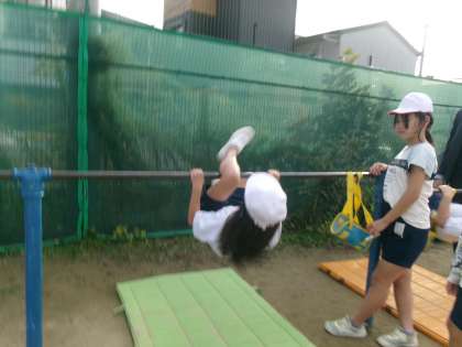 校長先生もスーツで鉄棒をやっておられて、子どもたちも「すごい…」と言っていました。