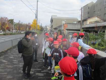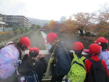 先週金曜日に社会科見学に行きました。社会科の学習で「用水のけんせつ〜琵琶湖疏水〜」の学習をしています。教室で調べ、学んだことを確かめるため疏水周辺(蹴上)を散策しました。また、紅葉が美しく、秋らしい景色も味わうことができました。