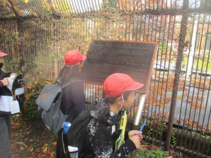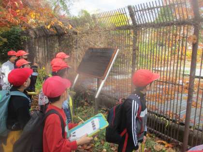 先週金曜日に社会科見学に行きました。社会科の学習で「用水のけんせつ〜琵琶湖疏水〜」の学習をしています。教室で調べ、学んだことを確かめるため疏水周辺(蹴上)を散策しました。また、紅葉が美しく、秋らしい景色も味わうことができました。