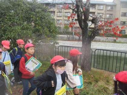 先週金曜日に社会科見学に行きました。社会科の学習で「用水のけんせつ〜琵琶湖疏水〜」の学習をしています。教室で調べ、学んだことを確かめるため疏水周辺(蹴上)を散策しました。また、紅葉が美しく、秋らしい景色も味わうことができました。