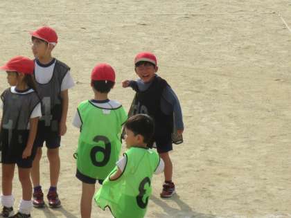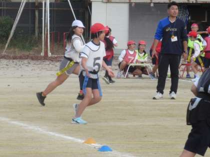 2年生はパスゲーム、4年生は陣取りゲーム(タグラグビー)をしています。