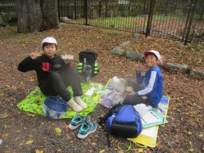 インクラインをのぼると田辺朔郎像がありました。その周辺でおいしいお弁当を食べました。にこにこして美味しそうに食べていました。