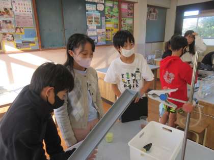 地層のでき方の実験をしました。