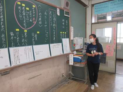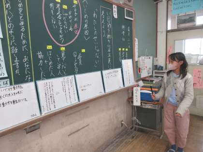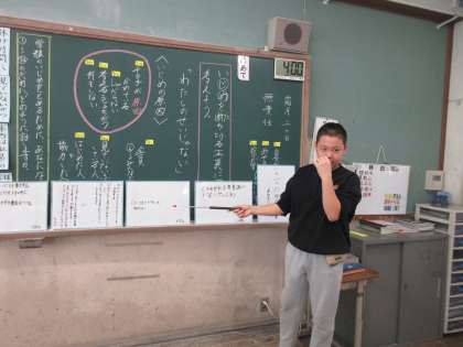 グループで話し合ったことを全体の前で発表しました。