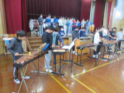 体育館で練習しています。