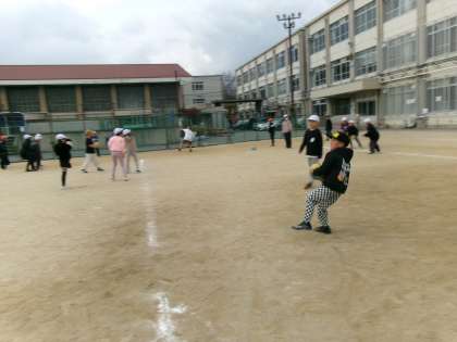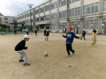 とんでくる球を必死に逃げていました。投げるボールが速いことに驚きました!