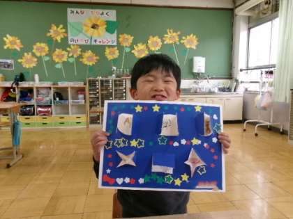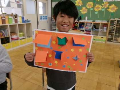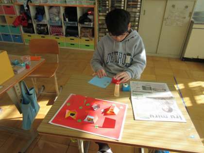 カッターを使って窓を作りその中に自分の好きな絵を描きました!