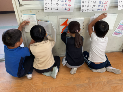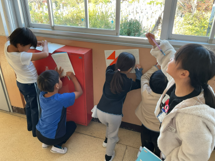 一生懸命に「直角」を探していますね。友達と「あった!あった!」と喜び合っていました。