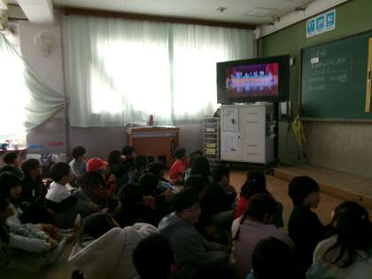 今日はリハーサルでした。「緊張した〜!」と言っていましたが、ばっちりでしたよ。教室に帰ってからは、みんなでリハーサルの動画を見ながら、振り返りました。
