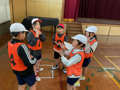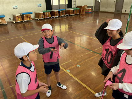 1試合を終えて「チームの時間」で良さを話し合います!「もっと下がろ!」「でも、空いてるところがねらわれるくない!?」「んな、どーしよ・・・」自然と作戦を考えることができるチームばかりでした。