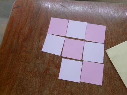 色紙を2枚並べる模様はすぐにできましたね。ですが、そこからいろいろな模様を作るところが難しかったですね。