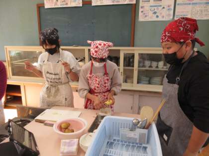 具材を切る人、いためる人を決めて、協力して調理をしています。