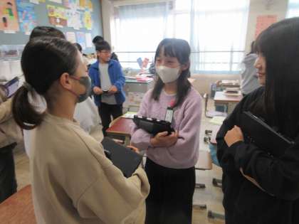 京都の魅力をまとめたパンフレットを作成しました。上手に書けていた友達に直接、素敵ポイントを伝えました。