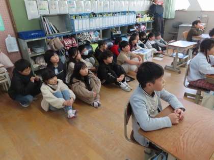 総合的な学習の時間に調べたことを2年生に知らせに行きました。当日まで何度もより分かるように改善し練習をしてきました。