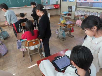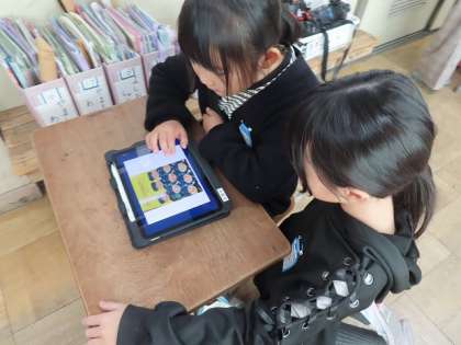 外国の民話の紹介をしています。ロイロノートに本の表紙の写真をいれて見せながら話をしています。