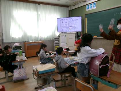 先生たちがサンタクロースやトナカイの格好をして歌を届けにきてくれました。とても楽しんで口ずさんでいましたね♪