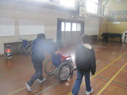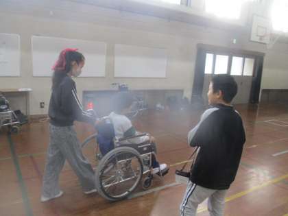 車いすに「乗る・押す・見守る」全員が三つの役割を体験することができました。この経験がこれからの過ごし方に生かされるといいですね。