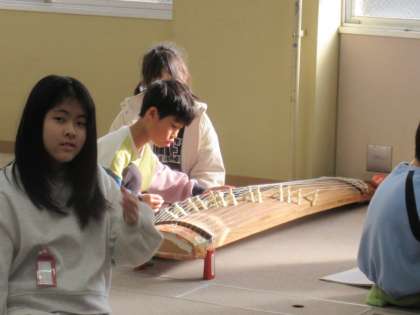ひまわり 4年 交流音楽 お琴にチャレンジ!