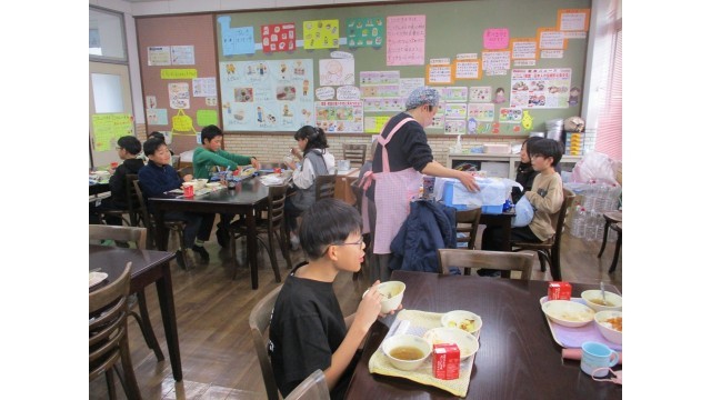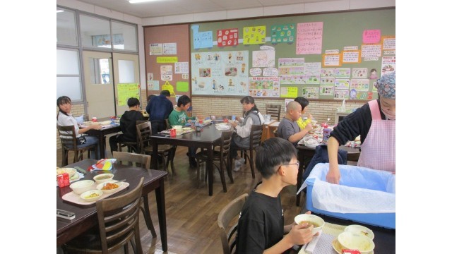今日の給食は、久しぶりにランチルームで食べました。いつもより楽しい雰囲気で食べれたようで、和気あいあいとしていました。