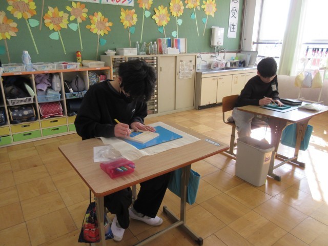 もうすぐ完成しそうな子もいて、写真立てにどの写真を入れようかと、担任と相談しながら過去の写真を懐かしく見返していました。