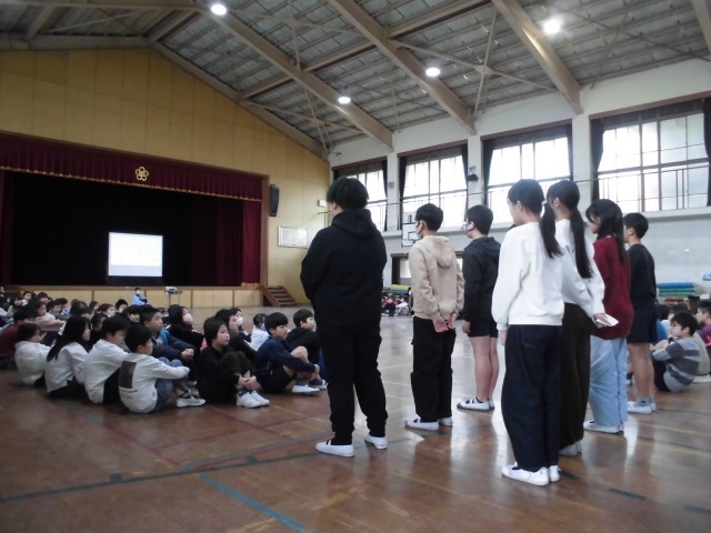 きずな集会では、学級目標のふりかえりを行いました。一年間の成長や頑張ったことを交流し、なかよしグループでお互いのよさについて話し合っていました。今回は5年生が主体となって話し合いを進め、リーダーとなる自覚が芽生えている様子でした。全体交流でも、5・6年生から次々と手が挙がり、発表を聞きながらみんながきずなを深めていく、すてきな時間となりました。