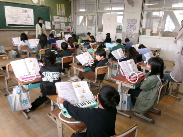 音楽では、「こぎつね」の曲のテストでした。みんなといっしょに練習して指づかいを意識して取り組んでいました。