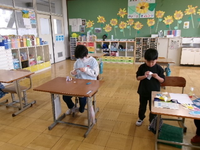 「ぼく工作大好き。」「わたしお花の紙でつくるの楽しい。」