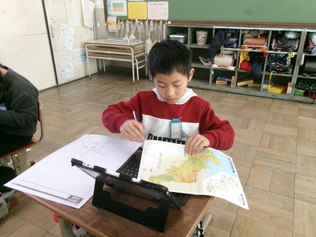 4月に学習した白地図と地図帳を使って、まずは京都市のどこでどんな行事やお祭りがおこなわれているかを確認します。