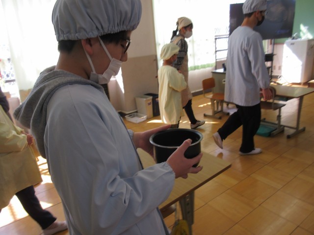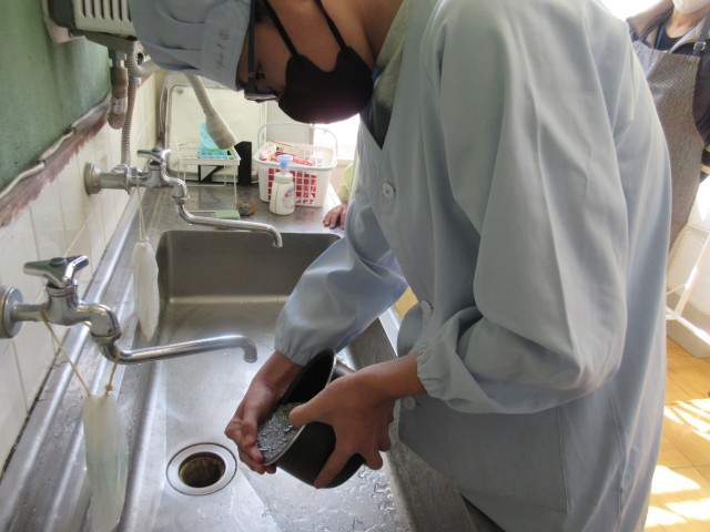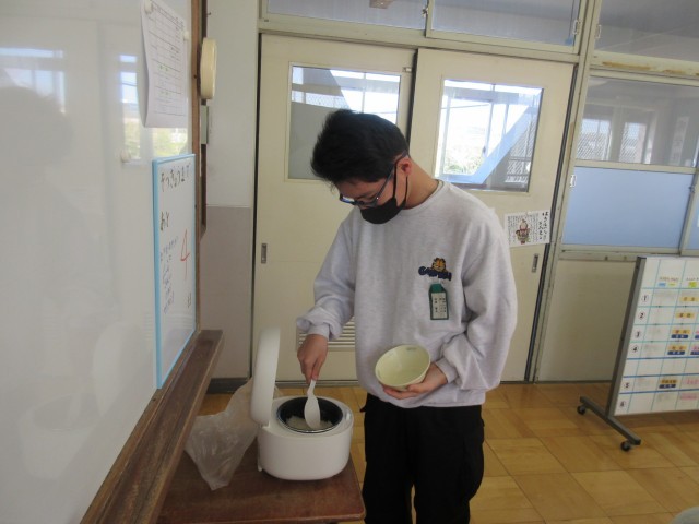 お弁当作りの取り組みで、炊飯器でお米を炊きました。