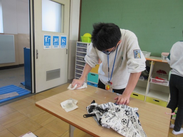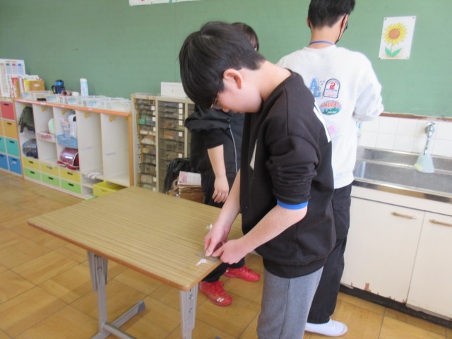 自分の机やロッカーの名前シールもはがし、雑巾できれいに掃除をしました。