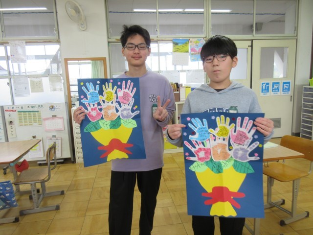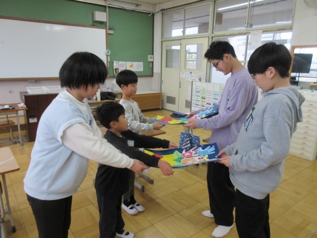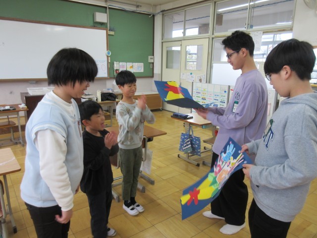 感謝の気持ちを込めて、6年生へ手形のお手紙を書いて渡しました。