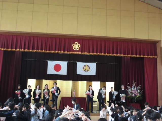 離任される教職員のみなさんとお別れの式をしました。心に染み入る愛情たっぷりのメッセージを子ども達は真剣に聞いていました。お集まりいただいた地域の皆さん、保護者の皆さん、ありがとうございました。離任される教職員の方々におかれましては、新しいところでのご活躍をお祈りしております。これまで納所小学校のためにご尽力いただきありがとうございました。